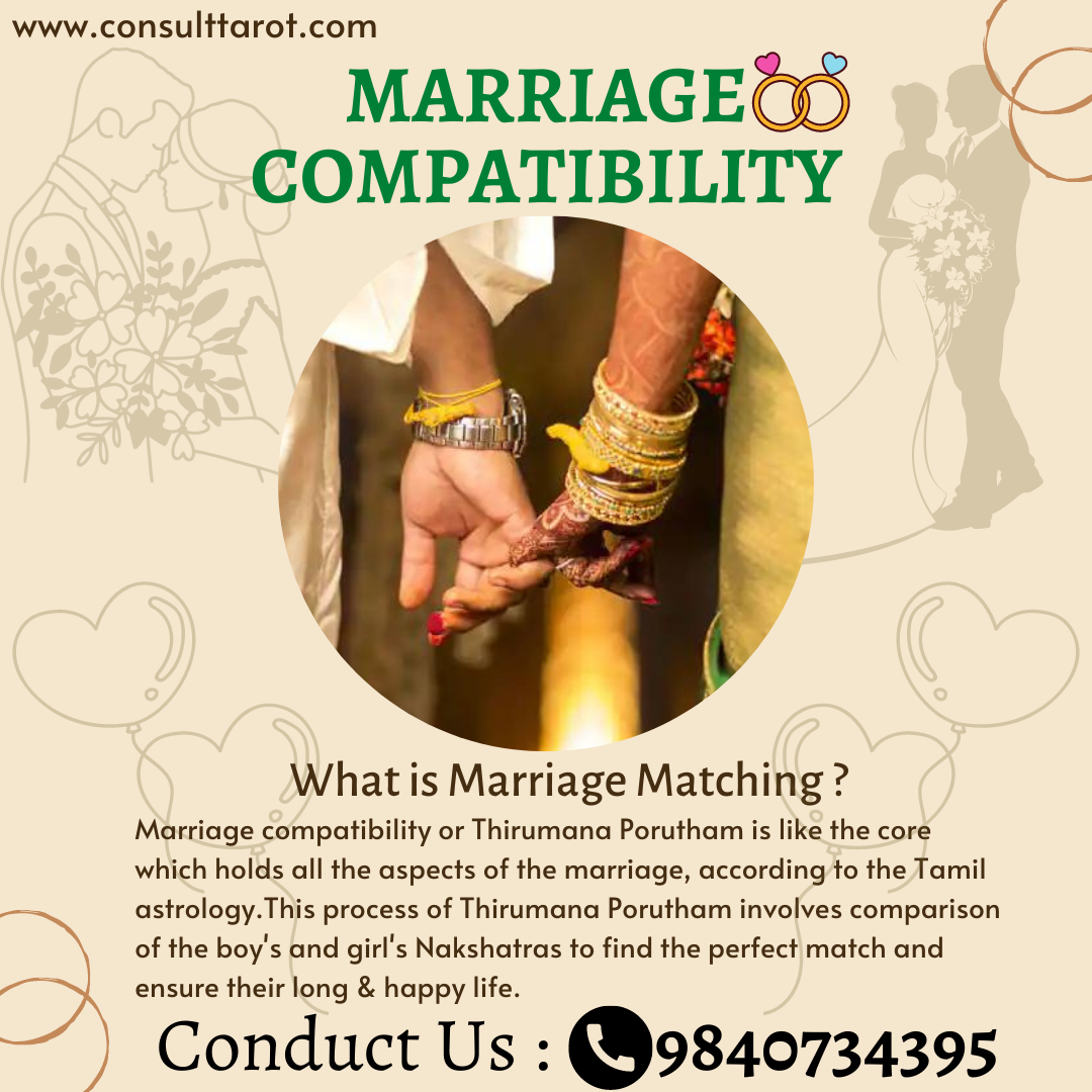 › horoscope-compatibilityJathaka or jathagam porutham for marriage|Thirumana porutham Thirumana porutham between a male and a female is identified by matching their horoscope according to the Tamil astrology compatibility guide for marriage. Thirumana porutham report offered by Tamilsonline includes a summary of 13 marriage horoscope matching factors and mangalya dosham porutham between horoscopes.